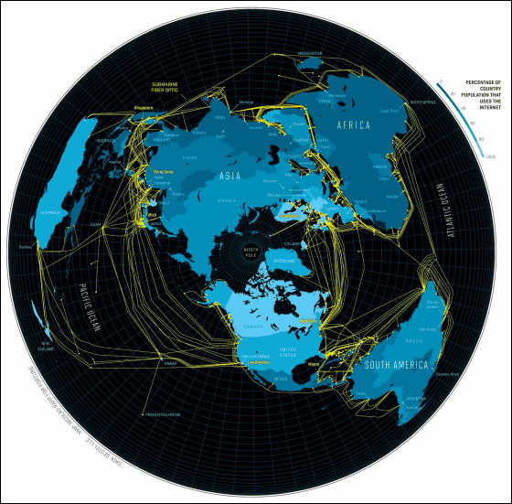 最後に、時期は2011年10月と古いが、海底ケーブルの世界地図を紹介する。